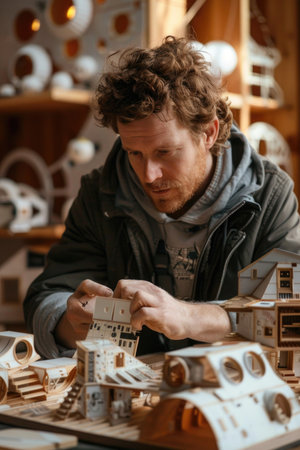 the master's hands sculpt ceramic houses out of clay