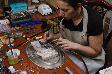 Woman working making jewelry in an artisanal way in her workshop in Bilbao, Vizcaya