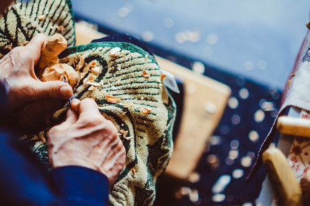 the hands of the craftsmen carved wooden product