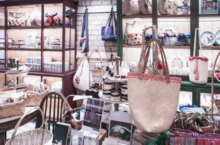 Venice, Italy, Mart 2019 - Showcases with fashionable ethnic bracelets offering in the market