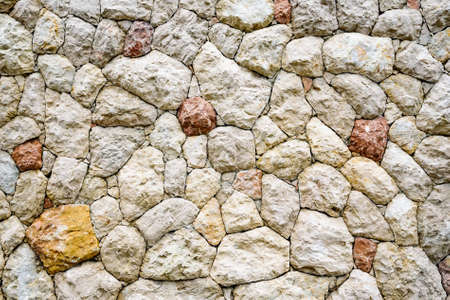 Textures made of natural multicolored stones. Multicolored stone blocks for use on backgrounds.