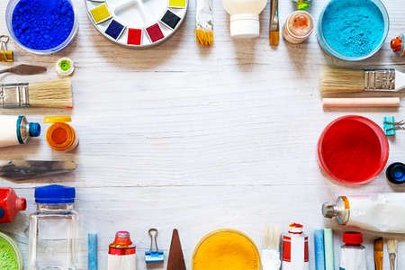 Still Life of Art Supplies. Creative Process. Background