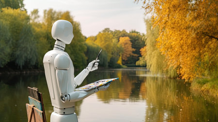 Robot model with pen and ruler. Image use for create idea of work , business concept.