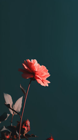 Elegant pink flower with green stem on turquoise background