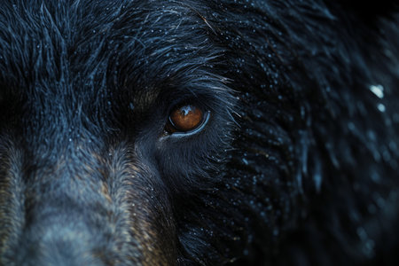 Close up of brown bear's eye in the rain. Shallow depth of field