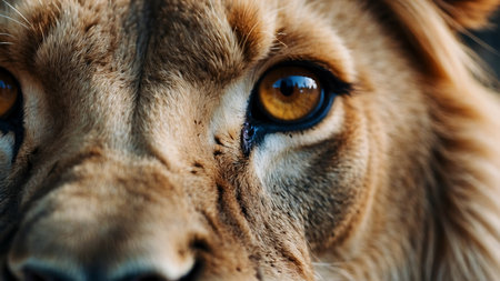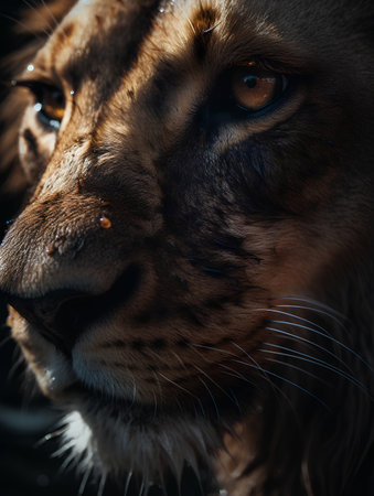 An AI generated illustration of a close-up portrait of a male lion, the majestic face filled with strength and grace