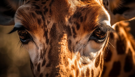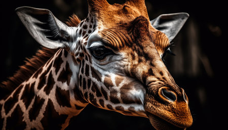The spotted giraffe beauty in nature, close up portrait captured generated by artificial intelligence