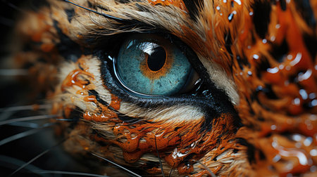Majestic close up of a tiger s striking eye showcasing vibrant orange and black stripes, capturing the essence of wildlife and nature s beauty