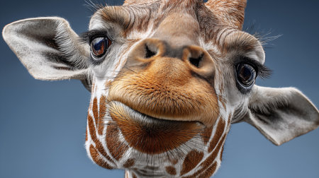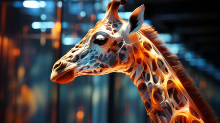 The elegant giraffe, with its spotted pattern, looks at camera generated by artificial intelligence