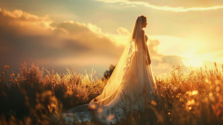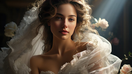 Ethereal Bridal Beauty in Flowing Veil. Generative ai. High quality illustration