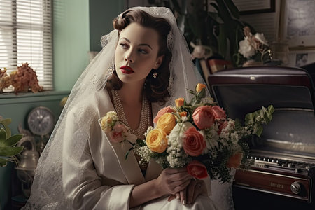 Bridal portrait in a flower-filled room showcasing elegance and grace in soft afternoon light Generative AI