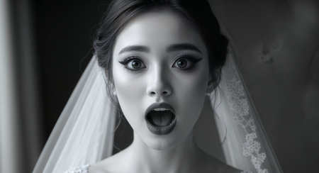 AI Generated. Bride with Open Mouth Surprised Expression and Stunning Makeup