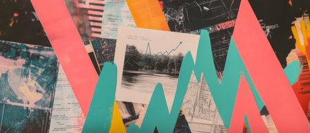 Minimalistic mixed media collage showcasing business metrics and growth charts