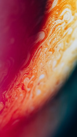 A macro shot of a creative background with abstract acrylic painted colorful patterns