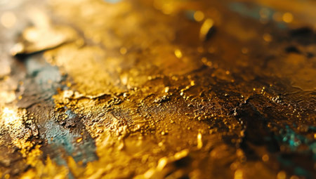 Glitter fluid spill. Ink drip. Defocused golden green black color shimmering texture oil emulsion drop wave abstract art background.