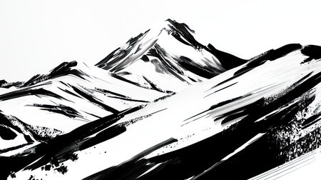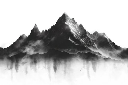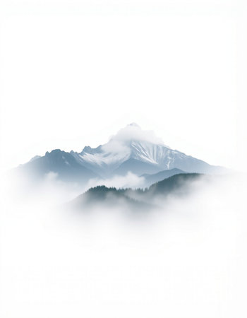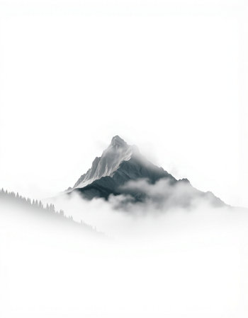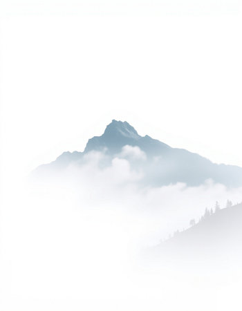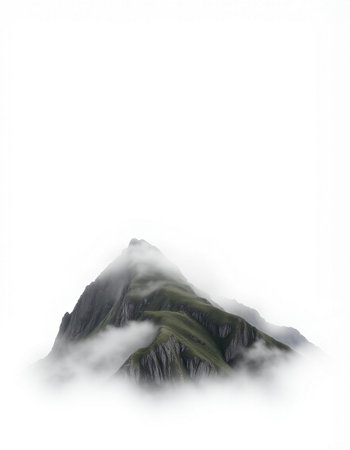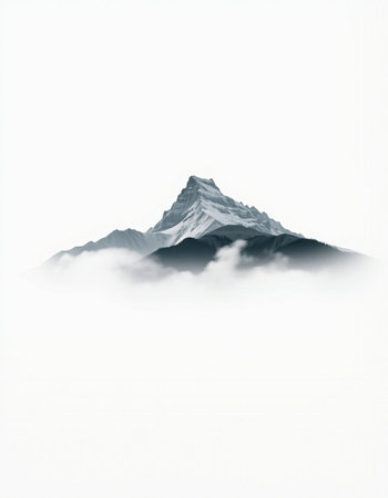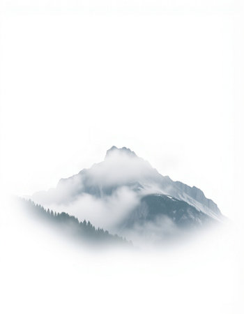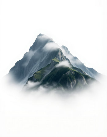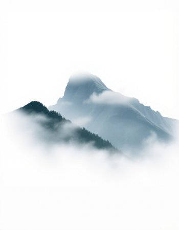 mountain peak in the clouds on a white background