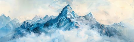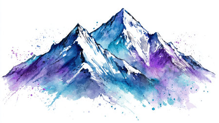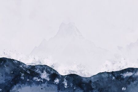 Abstract mountains in blue tone, digital watercolor painting