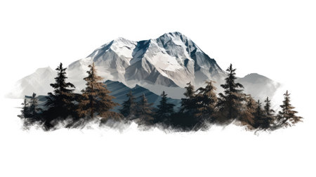 Mountain landscape isolated on white background.