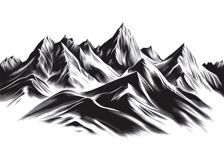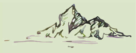 Mountain Range Sketch. Hand drawn vector illustration. Mountain landscape for posters and wallpaper, labels, fabric products, icons, stickers, rest and travel, creative compositions, etc.