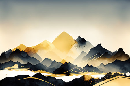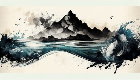 Ink texture wave mountain and water background