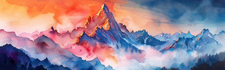 Abstract colorful mountain range in Japan on watercolor illustration painting background.
