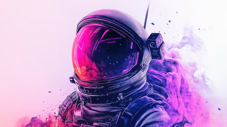 Cinematic image of an astronaut. Colorful portrait of a man with spacesuit