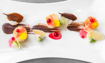 The food in the restaurant. Food styling and restaurant meal serving. Gourmet restaurant menu concept. Creative stylist restaurant