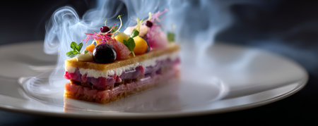 restaurant gourmet food on dark background. free space concept. delicious delicacy
