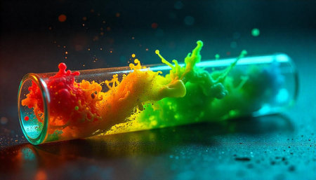 Colorful fluid explosion inside lab test tube on surface