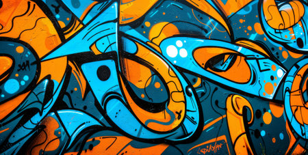 Graffiti background. Spray design blue orange art. Street pop wallpaper. Urban brush decoration. Abstract grunge paint element. Creative modern backdrop