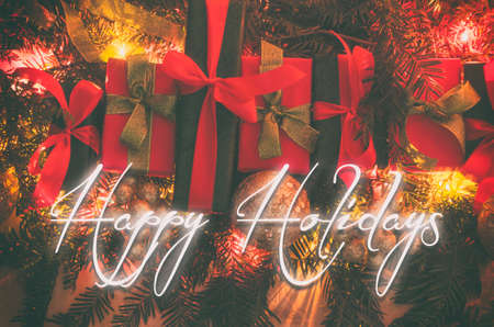 Christmas decoration background with message Happy Holidays!