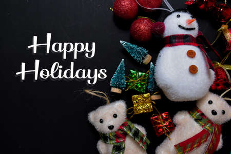 Happy Holidays text isolated on black backgroud. Frame of Christmas Decoration.