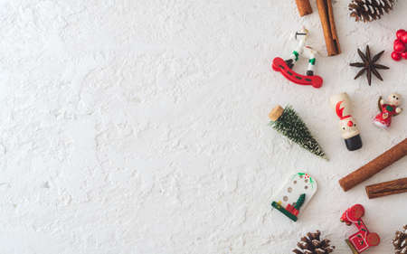Merry Christmas and Happy newyear flat lay background on grunge white wood with copy space for your text. Vintage Retro.