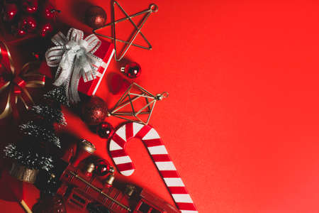 celebration happy new year and merry christmas season greeting holiday festival with red prop decoration gift on vintage background