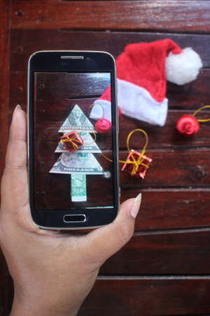 Taking photo of christmas money tree