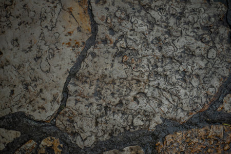 Rock texture. Dark stone wall. Stone background. Rock surface with holography, nacre. Wall abstraction. Paint spots. Rock surface with cracks. Abstract texture.