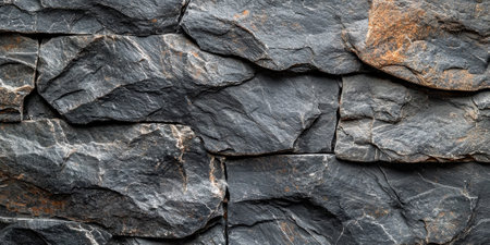 Detailed close-up of a dark stone wall with an irregular pattern and weathered textures, perfect for use in design projects, backgrounds, or architectural visualizations.