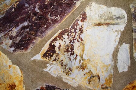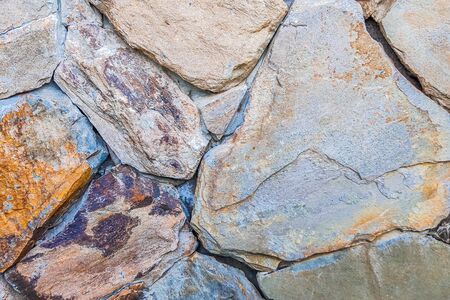 Textures made of natural multicolored stones. Multicolored stone blocks for use on backgrounds.