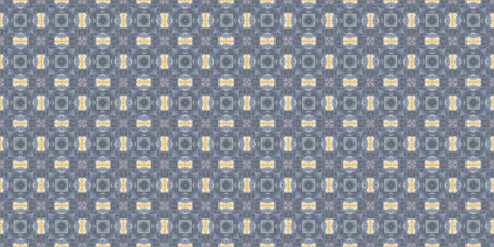 Soft grey geometric shapes edged with yellow small scale seamless repeating pattern.