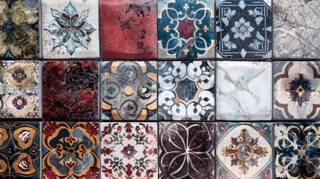 Exotic Moroccan tile background with intricate patterns, vibrant colors, and textured ceramic surfaces. The rich, cultural design adds an element of exotic beauty and craftsmanship to any scene