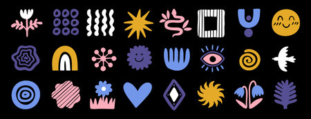 Dynamic interplay of abstract shapes and vibrant colors in bold design