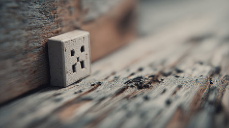 A striking close-up image of an electrical circuit breaker affixed to a wall, showcasing intricate details, soft shadows, and a textured background.
