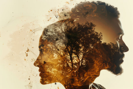 Emotional blend of human essence and nature through double exposure technique