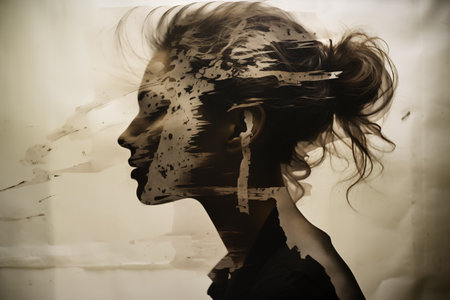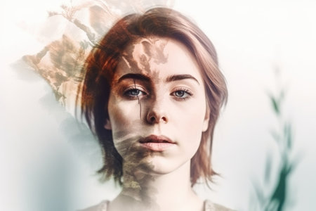 An AI generated illustration of a double-exposure portrait of a woman