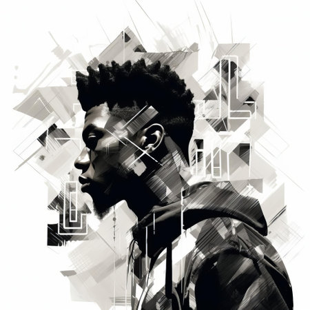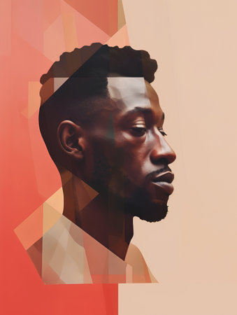 Portrait of a young African-American man in profile. Geometric background.