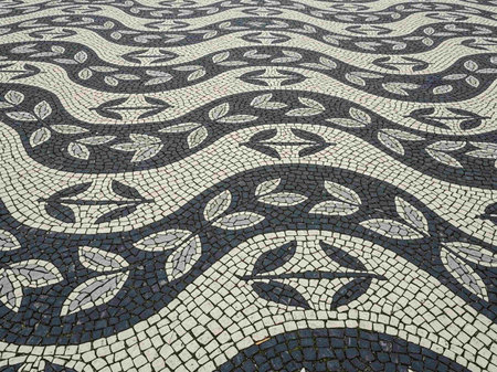 Mosaic of black and white tiles on the streets of Lisbon, Portugal