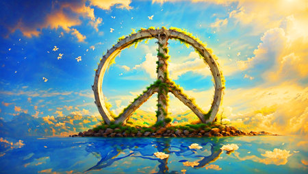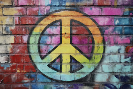 Vibrant and colorful urban peace symbol graffiti on a city street wall, showcasing artistic expression and activism through nonviolent symbols of hope and harmony for the modern youth culture