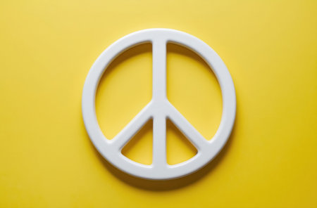 Vibrant minimalistic peace sign close up bright photoreportage on white background