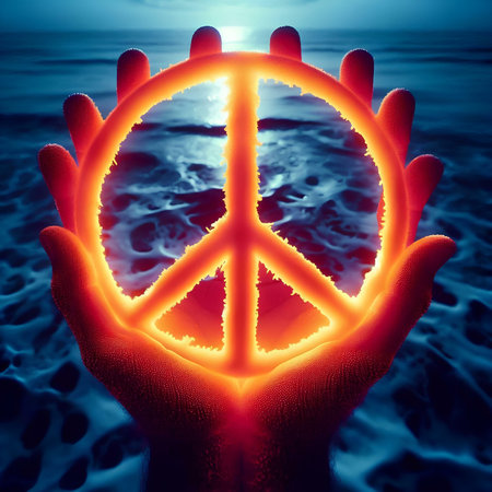 A 3D Earth model with peace sign carved into oceans, Ai generated image