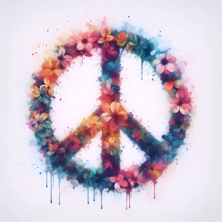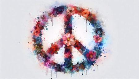 Watercolor peace sign with bleeding floral elements, Ai generated image